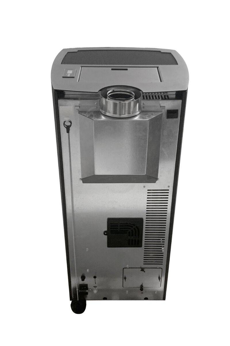 6. De standaard ontsteker, uitlaat van 80 mm aan de achterzijde van de kachel en een luchtinlaat van 40 mm.