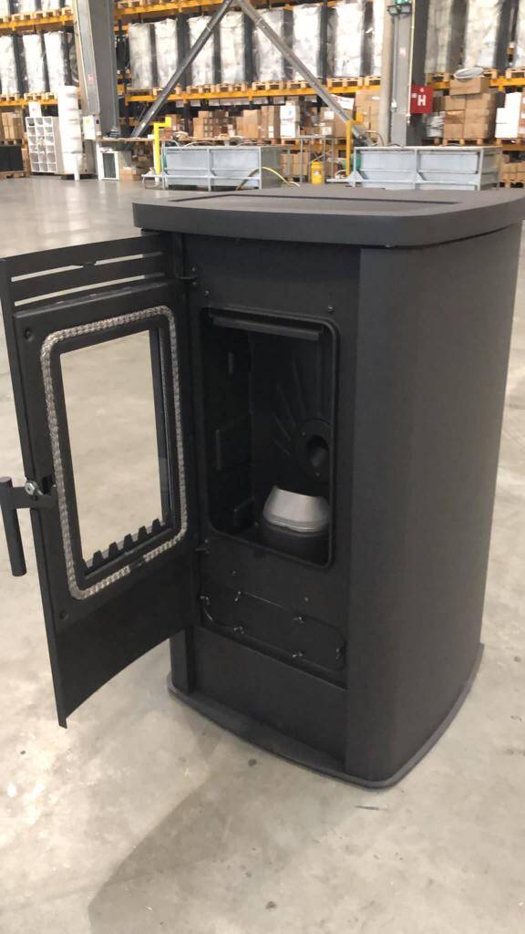 2. Een nieuwe, kostenbesparende innovatie is het binnenwerk dat uit één gehele plaat gevormd is door deze plaat onder hoge druk in een mal te persen. Hierdoor zijn alle laswerkzaamheden die bij een traditionele kachel noodzakelijk zijn verleden tijd geworden.