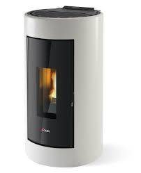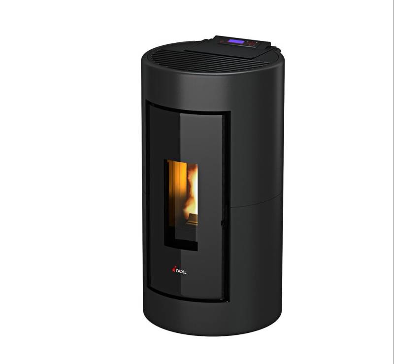 De Shell van Cadel is een stijlvolle ronde pelletkachel in de kleuren wit, zilver, zwart en rood van een meter hoog.
