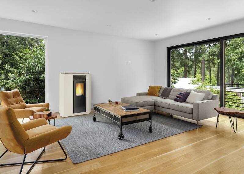 Deze pelletkachel is beschikbaar in 3 vermogens (6, 8 en 10kw) en kan zowel achteraan, bovenaan als aan de zijkant aangesloten worden. Beschikbaar in de volgende kleuren