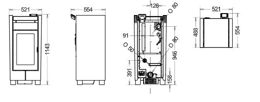 Deze 9 kW kachel is standaard voorzien van kanalisatie.