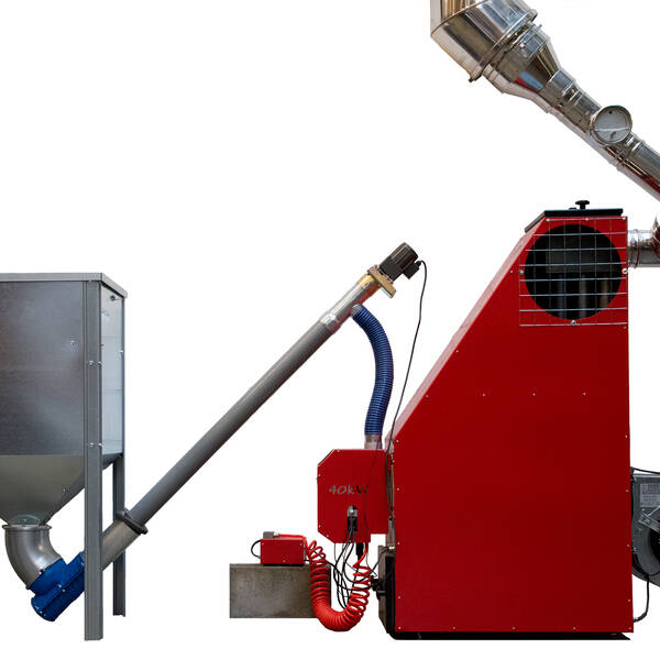 De ULMA warmeluchtverhitter op pellets is ideaal voor het verwarmen van een atelier, werkruimte, hangar, grote garage, ... U kunt kiezen uit een vermogen van 20 kW of 40 kW. Snel, efficiënt, milieuvriendelijk en goedkoop verwarmen van grotere ruimtes.