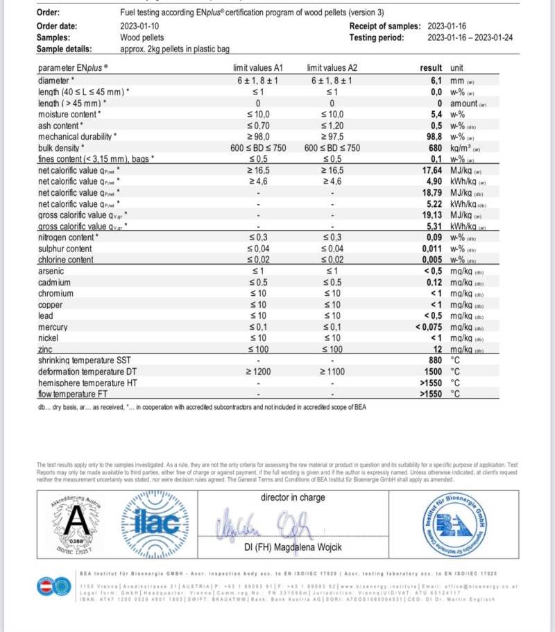 Onderstaand vindt u de testresultaten die tot de ENplus-certificering hebben geleid.