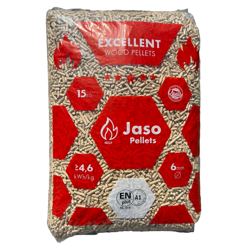 Jaso Excellent houtpellets zijn gemaakt van 100% hoogwaardig naaldhout uit duurzaam beheerde bossen. Met deze 5 sterren witte houtpellets bent u zeker van een geweldige warmte afgifte van maar liefst 4,9 kWh/kg en hoger. Daarnaast bieden de Jaso Excellent houtpellets een laag asgehalte waardoor uw kachel minder vaak schoongemaakt hoeft te worden. Tijdens het stoken ontstaat er een rustig en mooi vlambeeld.