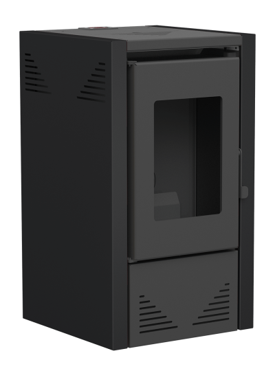 - Staande pelletkachel in zwarte uitvoering
